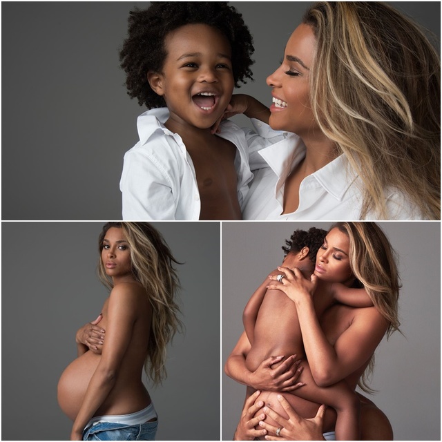 hirdetésA 31 éves kismama a Harper's Bazaar magazin kedvéért szabadult meg ruháitól és tette közszemlére napról napra egyre nagyobb pocakját. A fotózáson kisfia, Future Jr. is megjelent, aki Ciara a rapper Future-höz fűződő románcából született 2014 májusában.
