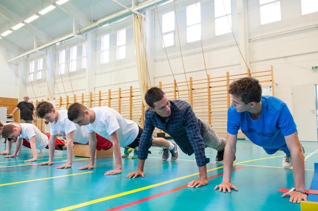 A NETFIT®-hez hasonló teszteket edzéseken is végzünk, például az állóképességi tesztet, ebben elég jó eredményt sikerült elérnem. Most a fekvőtámasz, hasizom és helyből távolugrás tesztet is megcsináltam, és szerencsére nem vallottam szégyent sem Balogh Gábor, sem a felsős gyerekek mellett