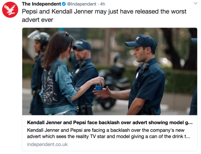A probléma csupán annyi, hogy Kendall Jenner egy fehér szupermodell, aki bár szőkeként az általános szépséget akarja megjeleníteni közel fél másodpercen keresztül, majd lekapja az »álruháját«, és barna hajjal, barna sminkkel, egy fekete lányt akar megidézni, aki kiáll a rendőrség előtt, végetvetve a problémáknak (???).