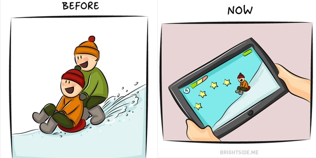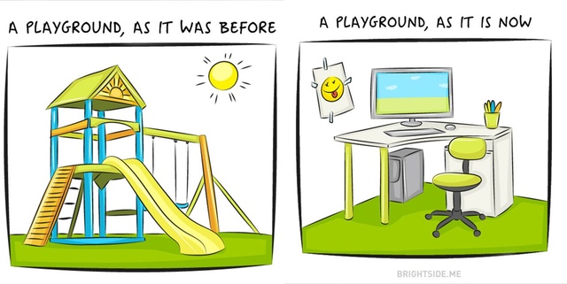 A technológia fejlődésével kétségtelen, hogy a feje tetejére állt a világunk és míg korábban a személyes találkozások és élmények voltak a meghatározóak, mostanra a legtöbben (tisztelet a kivételnek) bezárkóztak egy online buborékba, ahonnan alig lehet kicsalogatni őket. Az alábbi ábrák segítségével azt szemléltetjük, milyen rossz irányba fejlődött a világ, ami egyúttal szolgáljon gondolatébresztő gyanánt!