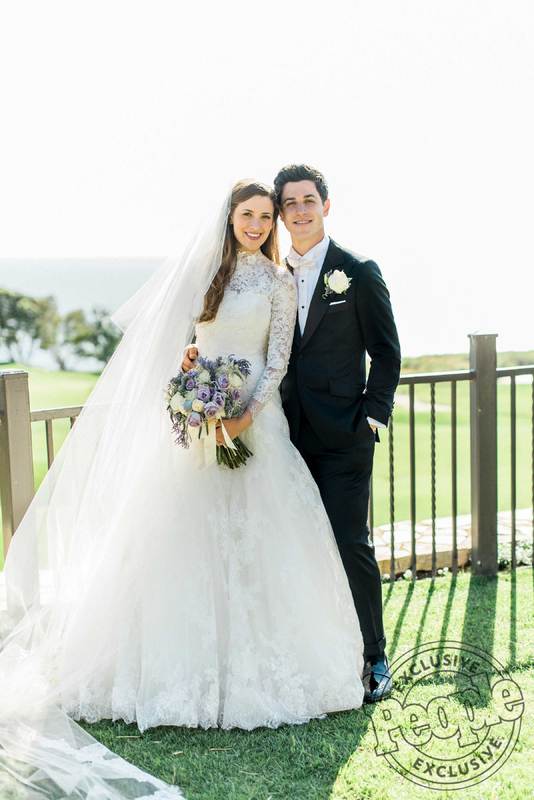 Az esküvőjük Ó-Hollywood inspirált volt, és a helyszínt természetesen a csodálatos Kalifornia biztosította pénteken. Az A-vonalú ruhát Alencon and Chantilly biztosította kosztüm csipkéből készítve, míg David egy Indochino öltönyben mondta ki a boldogító igent, egy fehér csokornyakkendővel megfűszerezve.
