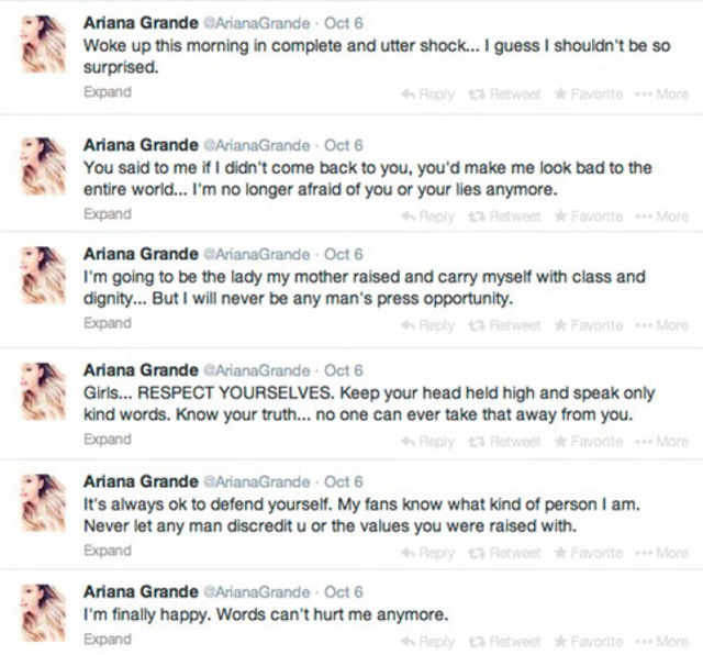 Ariana, aki alapból a nagy szájáról ismert, természetesen másnap reggel visszaszólt Jai-nek, és Twitteren kezdett csipogni arról, hogy Jai mennyire elkeseredett, hogy visszaszerezze őt, és már korábban is megfenyegette, hogy rossz színben tünteti fel a sajtó előtt, ha nem ad neki még egy esélyt.