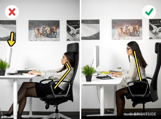 A nyakfájás megelőzésének első és legfontosabb lépése, hogy állítsd be a monitorodat. Ha túl alacsony, akkor be kell hajlítani a hátadat vagy lecsúszni a széken, ami se a nyakadnak, se a hátadnak nem tesz jót, ráadásul sérvhez vezethet. Helyezkedj el kényelmesen a székedben és úgy állítsd be a monitorodat, hogy az közvetlenül szemben legyen veled (ennek érdekében akár egy kis emelvényre is állíthatod). A lényeg, hogy ne kelljen lehajolnod, felfelé ágaskodnod, vagy oldalra nézned ahhoz, hogy jól lásd a képernyőt.