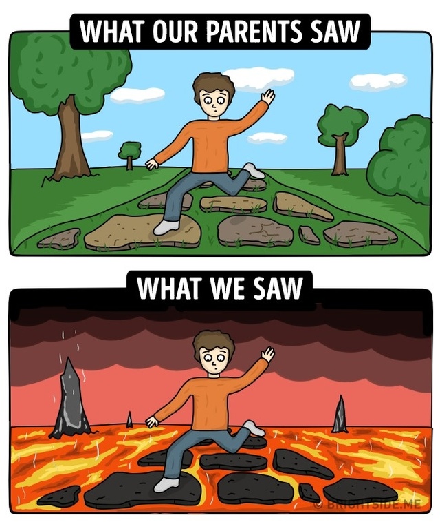 13 illusztráció arról, hogyan láttuk mi a gyerekkorunkat és hogyan a szüleink