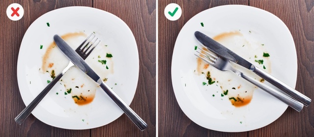 Evőeszközök elhelyezése étkezés után