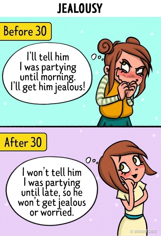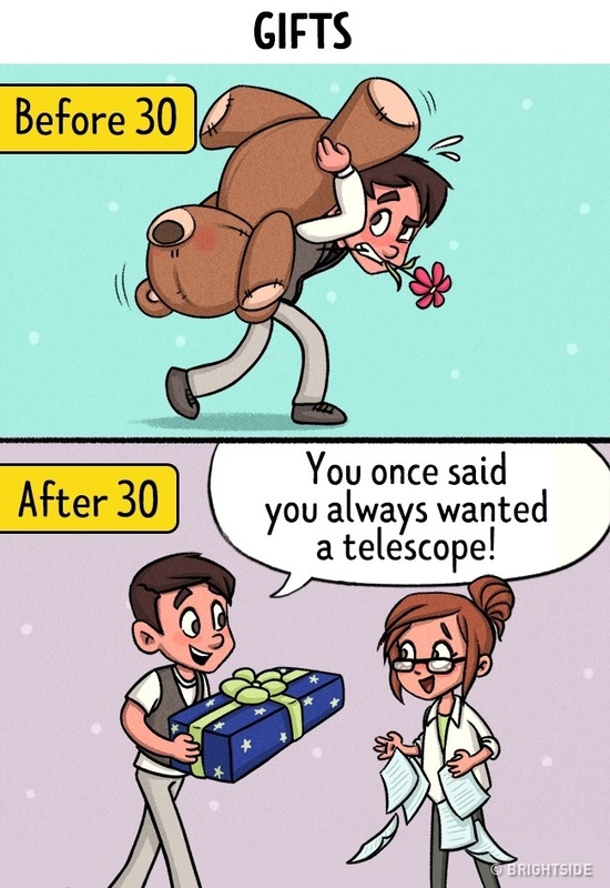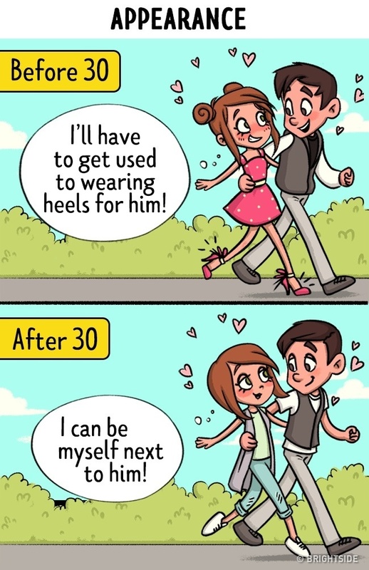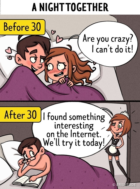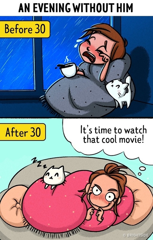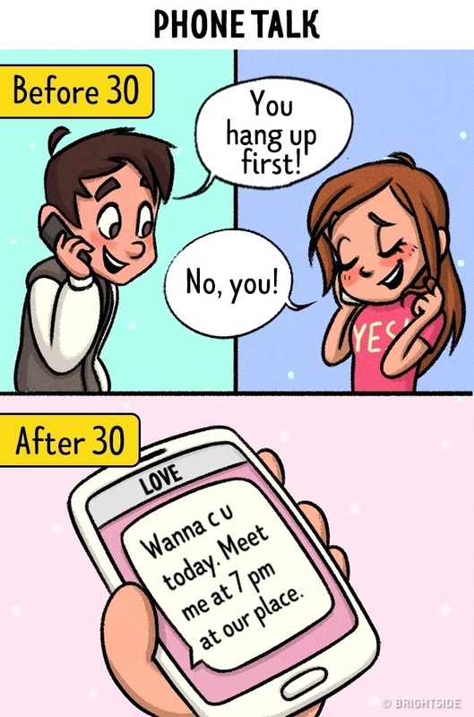 13 képpár arról, milyen a szerelmi élet 30 éves kor előtt és után