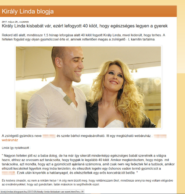 hirdetésEgy internetes fórumról indult és terjedt el a pletyka, miszerint Király Linda áldott állapotban van, ami miatt leadott negyven kilót, méghozzá egy „csodaszer” segítségével annak érdekében, hogy egészséges gyermeket hozhasson világra. A Ripost utánajárt annak, mi az igazság, és Los Angelesben érte utol a szőke szépséget, aki felháborodottan fogadta a róla terjedő álhíreket, és cáfolta, hogy egy új élet növekedne a szíve alatt.
