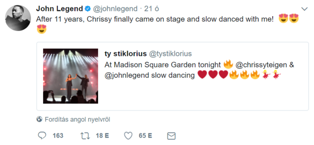 Legend számára mindenesetre a bakitól függetlenül is emlékezetes volt az este, aminek okáról így fogalmazott a Twitteren: