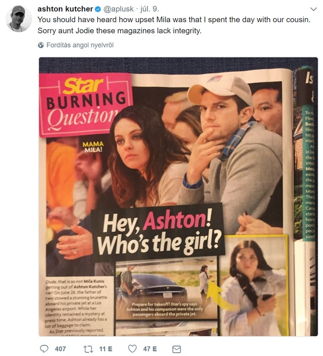 – olvashatjuk az óriási szalagcímet, Ashton pedig válaszolt is a Twitteren: