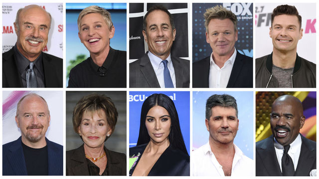 A lista legfiatalabbja Kim Kardashian a maga 36 életévével, ráadásul Ellen DeGeneres és Judy Sheindlin mellett ő a harmadik és egyben utolsó nő a listán. Az alábbi összeállításból kiderül, hogy legjobban a műsorvezetőket fizetik, de a humoristák sem panaszkodhatnak.