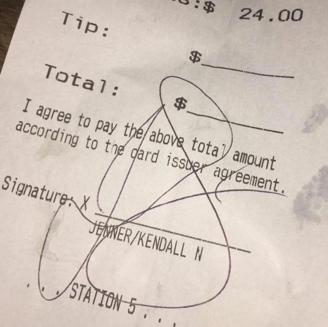 hirdetésKendall Jenner a hétvége folyamán beugrott a Brooklynban található Baby’s All Right étterembe, ám a kiruccanás nem úgy sikerült, ahogy azt remélte. Nem sokkal azután ugyanis, hogy elhagyta a helyet, az étterem munkatársai megosztották közösségi oldalukon a részére kiállított és általa aláírt 24 dollárról (~ hatezer forint) szóló számlát, amit hitelkártyájával egyenlített ki. Ezzel nem is volt baj, hiszen a kártyán volt fedezete, ám a vendéglátó egység dolgozói sérelmezték, hogy nem hagyott a részükre borravalót – jól látszik a blokkon, hogy a modell üresen hagyta a borravaló részére hagyott sort és nem írt be oda semmilyen összeget.