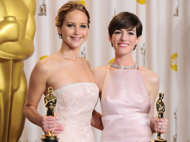 A Napos oldal című filmben nyújtott alakításáért Jennifer Lawrence megkapta élete leső Oscar-díját - ezzel 22 évesen ő lett a második legfiatalabb díjazott. Bradley Cooperrel igazán jó párost alkottak. Azonban eredetileg nem ők alakíthatták volna a főszereplőket, hanem Anne Hathaway és Mark Wahlberg. Harvey Weinstein filmrendező mindenképpen Anne-t akarta, azonban a színésznő visszalépett a Nyomorultak című film kedvéért. Szerencsés váltásnak bizonyult, hiszen megnyerte a legjobb női mellékszereplőnek járó arany szobrocskát.