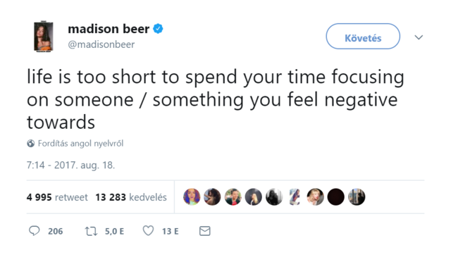 Madison Beer szerint az élet túl rövid ahhoz, hogy negativitásra pazaroljuk az időnket