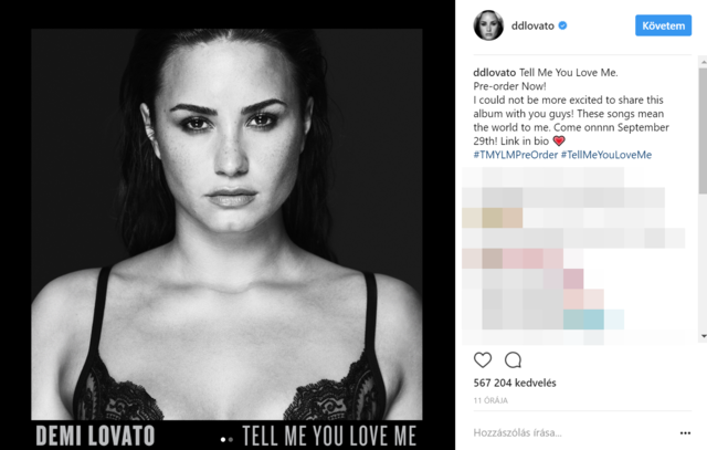 hirdetésDemi Lovato csupa meglepetés! Az énekesnő néhány órája jelentette be, hogy szeptember 29-én, Tell Me You Love Me címmel jelenik meg legújabb, szám szerint hatodik nagylemeze, azóta pedig a címadó dalt is megosztotta tűkön ülő rajongóival.