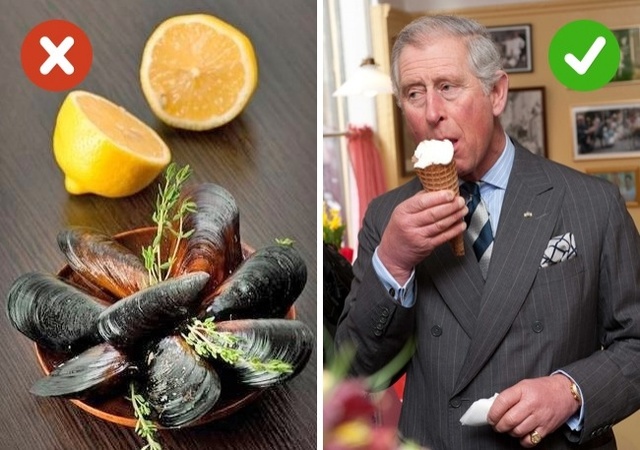 A királyi család tagjainak kerülniük kell a tenger gyümölcseit egészségügyi okokból – egyesek szerint a felhalmozódó toxinok miatt tartják veszélyesnek e finomságokat. Károly herceg mindazonáltal a közelmúltban vétett a szabály ellen, ugyanis részt vett a kenti Whitstable Oyster Fesztiválon, ahol mazsolázgatott a tiltott finomásgokból. Mindazonáltal egyéb ételek is kerülendőek, de szerencsére a fagylalt nincs a listán.
