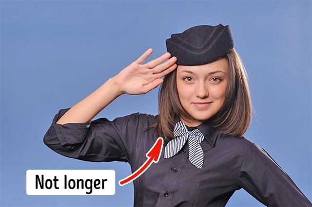 A szabályzat kimondja, hogy egy stewardessnek nem lehet hosszú, sok odafigyelést igénylő haja, ugyanis frizurája nem zavarhatja meg a munkájában. (Ezért kell sok helyen feltűzve viselni azt.) A British Airways például megköveteli dolgozóitól, hogy a válluknál tovább ne érjenek tincseik.