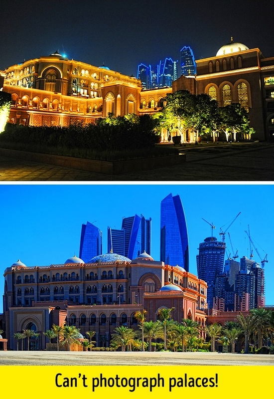 Helyi babonák miatt sok helyen tilos kamerát használni az Emírségekben, így ha itt jársz, mindig nézz körül, nem látsz-e az adott helyen figyelmeztetést a fényképezésre vonatkozóan. Ha ugyanis olyan helyen fényképezkedsz, ahol nem szabadna, akár be is börtönözhetnek, nem is beszélve az átlagosan 1361 dollárra (~ 340 ezer forint) rúgó pénzbírságról. Egy kis útmutatóként eláruljuk, hogy tilos fényképezni a kormányzati épületekben, egyes hidakon és a sejkek palotáiban, illetve ezen épületek környékén.