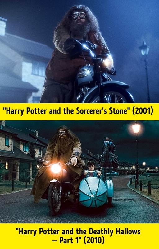Bizonyára emlékszel még arra a jelenetre az első filmben, amikor Hagrid (Robbie Coltrane) Sirius (Gary Oldman) repülő motorján viszi Harryt Dursley-ékhez, majd az utolsó könyv, a Harry Potter és a halál ereklyéi kettébontott filmváltozatának első felében az óriás ugyanezzel a járgánnyal viszi el a fiút a Privet Drive-ról.