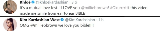 – lelkesedett a színésznő, később pedig Khloe és Kim is a tudomására hozták, hogy a rajongás kölcsönös: ők is szeretik Millie-t.