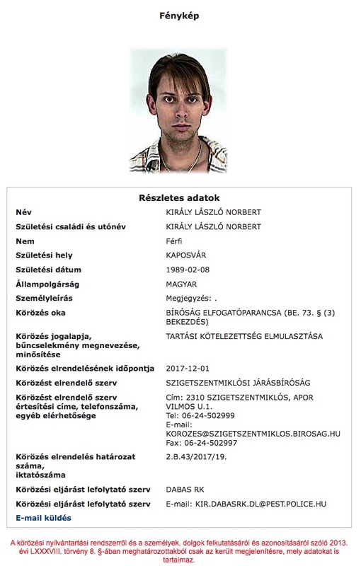 Körözést adott ki a rendőrség Király L. Norbi ellen