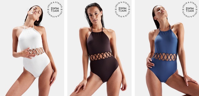 Így néz ki a Barbi által tervezett fürdőruha, ami három színben, fehérben, csokoládébarnában és kékben is kapható a Solid & Striped oldalán The Barbara néven, potom 168 dollárért.