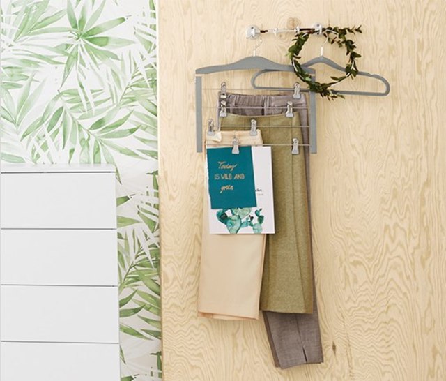 Nem túl szembetűnő, mégis rendszeresen felmerülő probléma a kevés vállfa – vagy éppen a számukra elegendő hely. A kínálatban szoknyákhoz, nadrágokhoz és ingekhez is találunk olyan megoldást, ami segít majd az átláthatóbb, és kevésbé nagy helyigényű tárolásban! A helytakarékos szoknya és nadrágtartó vállfa segítségével négy ruhadarabot tárolhatunk egyetlen vállfa helyén, hiszen csúszásgátló, anyagkímélő bevonattal ellátott csíptetők egymás alatt helyezkednek el! A keret FSC® tanúsítvánnyal rendelkező, lakkozott, tömör bükkfából, a forgócsuklós akasztó pedig krómozott fémből van, vagyis a praktikus kiegészítőről az is elmondható, hogy igazán minőségi anyagok felhasználásával készült!