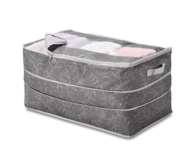 Akadnak olyan területek is a lakásban, amelyekre nem elsősorban tárolási lehetőségként tekintünk, de ennek leginkább az lehet az oka, hogy alapvetően nem is ez a funkciójuk. Az ágy alatti üres terület az egyik olyan, amely megfelelő tárolókkal igazán praktikusan használható például arra, hogy akár az ágyneműket, akár az ellentétes évszakhoz kapcsolódó darabokat helyezzük el. A nagyjából 18 cm magasságú ágy alatti tároló épp abban segít, hogy ezt a területet is kihasználhassuk: ablakos fedelének köszönhetően könnyen áttekinthető a tartalma, így nem kell aggódnunk amiatt, hogy elfelejtjük majd, mit helyeztünk el benne. A behelyezett oldalfalakkal stabil darab, amely véd a por és a piszok ellen is, ráadásul nem csak ágy alatt, hanem akár magasabb szekrények tetején is segíthet, hogy praktikus extra tárolóhelyhez jussunk. Körbefutó, kétutas cipzárának és stabil hordozófülének köszönhetően mind nyitása, mind a hordozása könnyen megoldható.