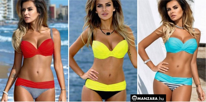 Természetesen ezzel nincs még vége, a következő a sorban, a sokak által kedvelt kétrészes darab, a bikini! Itt a merész strandolók kerülnek előnybe, akik bátran mutatják be bájaikat, gyönyűren lebarnult domborulataikat. Meg kell említetünk az élénk színű fürdőruháinkat, a sárga vagy pink szín nélkülözhetetlen idén! Főleg, ha izgalmas keresztpántos tervezéssel van megoldva a felső része, hihetetlenül egyedi és mutatós. Téged fog irigyelni mindenki! Vagy mit szólsz egy masniszerű dekorációhoz? Nem is tudsz majd választani. Mindenképp tekintsd meg a folyamatosan megújuló kínálatunkat!