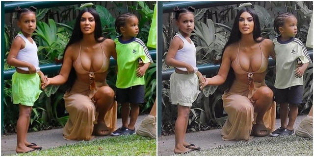 hirdetésKim Kardashian néhány nappal ezelőtt tett közzé egy olyan felvételt az Instagramon, melyet egy lesifotós készített róla és nagyobb csemetéiről Northról és Saintről. A @fakegirlsfvckya nicknév alatt futó Instagram-fiók tulajdonosa azonban rámutatott, hogy a képpel Kim az igazságot próbálja kendőzni, ugyanis az általa közzétett felvételen North vékonyabbnak tűnik (főleg pocak tájékán), mint az eredeti felvételen.
