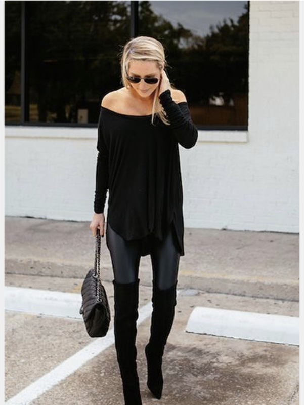 A sapkával teheted bohókássá az outfitet, de önmagában az áttetsző, hosszított felső és a bőrnadrág kombinációja igazán csinos választás, a magassarkú nőiességet kölcsönöz. Ha szeretnéd egy kicsit lazábbá átformálni, a magassarkút bakancsra vagy egy lapos csizmára cserélheted és máris sokkal vagányabb lesz az összeállítás: