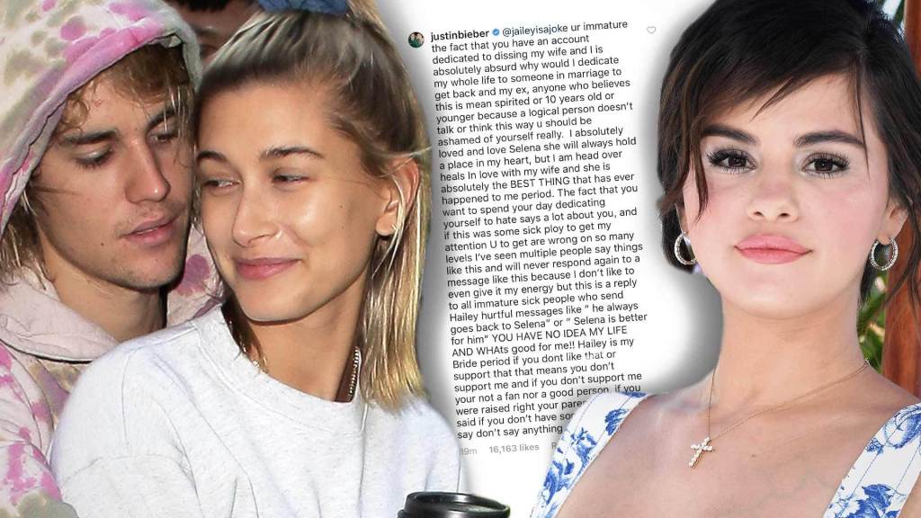 Justin mindig visszamegy SelenáhozvagySelena sokkal jobban illik hozzá. Nektek halvány lila gőzötök sincs az én életemről, ahogy arról sem, mi a jó nekem! Hailey a nejem, ha pedig ez nem tetszik vagy nem támogatjátok, akkor engem sem támogattok, ez pedig azt jelenti, nem vagytok a rajongóim, és jó embereknek sem mondhatjátok magatokat, mert ha a szüleitek jó nevelést adtak volna nektek, azt tanították volna, hogy ha nem tudsz jót mondani, akkor inkább ne mondj semmit.
