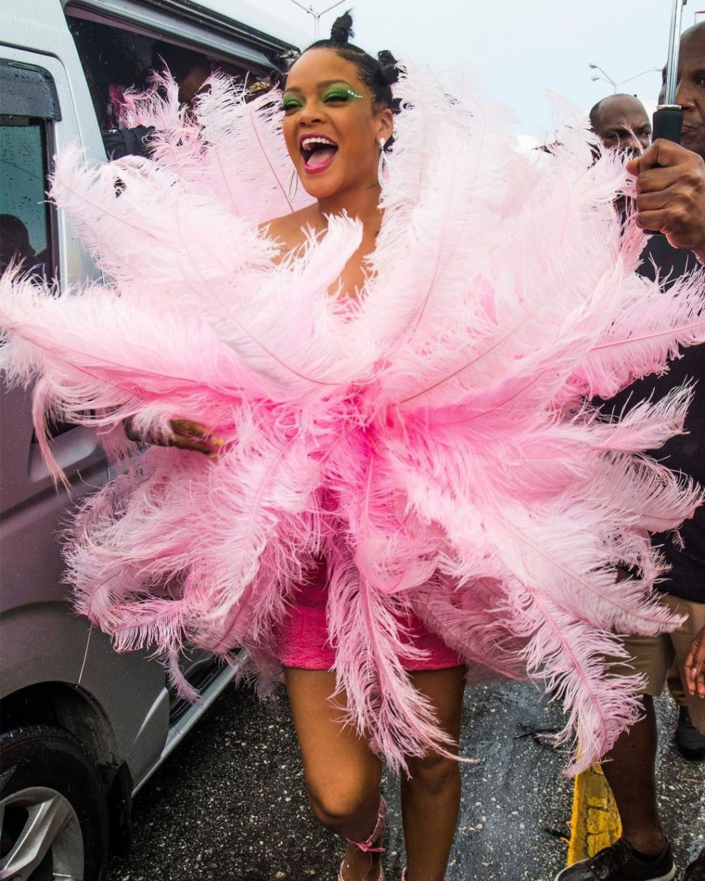 hirdetésRihanna nem hazudtolta meg önmagát, amikor megjelent a Barbadoson megrendezett Crop Over fesztiválra, amely hivatalosan a cukornád aratás szezonjának végét ünnepli. Az énekesnő óriási rózsaszín tollgombócként lépett a helyszínre, és a képek alapján egészen nyilvánvalóan jól érezte magát. RiRi először 2011-ben látogatott el a fesztiválra, akkor igazi karneváli szerelésben szórakozott, majd két évvel később ismét megörvendeztette rajongóit, és egy fehér, kristályos bikini szettben vonult fel.