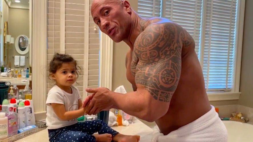Apának sem utolsó! A kislánya kezeit mosó Dwayne Johnsonnál cukibbat ma már tuti nem látsz!