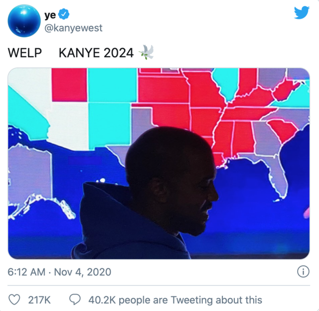 Kanye West a választások után, november 3-án elfogadta, hogy 2020-ban veszített, ám nem adja fel.