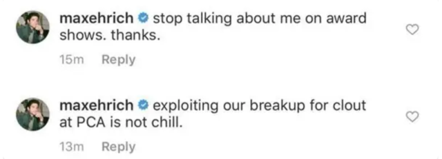 Ne beszélj többet a díjátadókon rólam. Kösz. Kihasználni a szakításunkat a PCA-n nem menő.