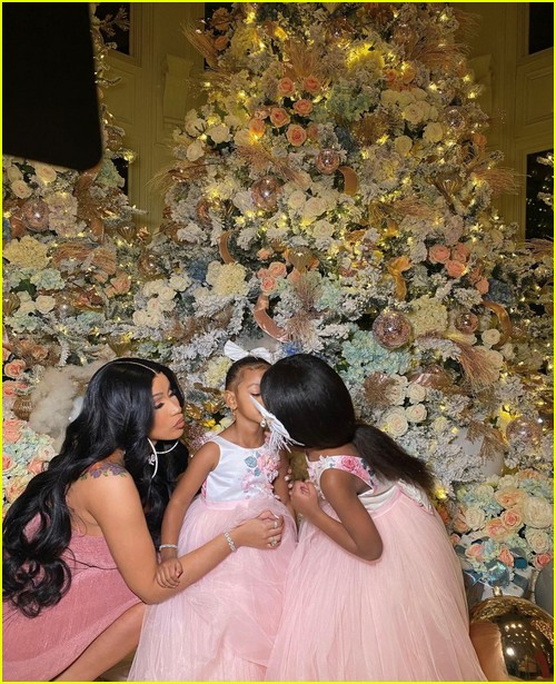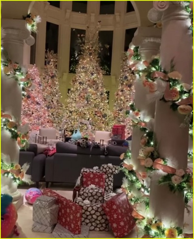A kislánya, Kulture, több felvételen is látható, ahogy a fa körül ólálkodik. A fotókon az is jól látszik, hogy idén a divatos rose gold és fehér színek domináltak.