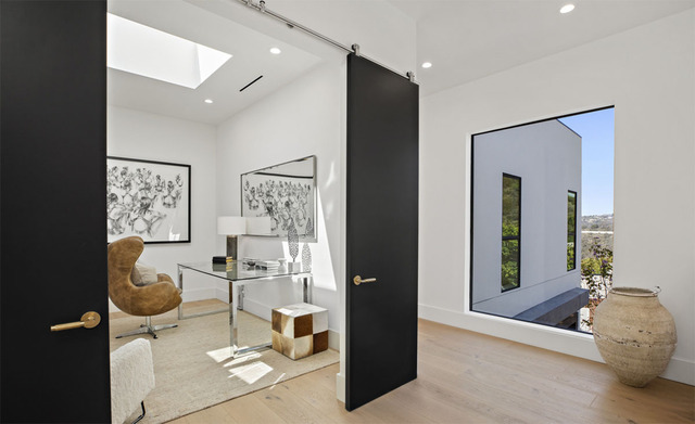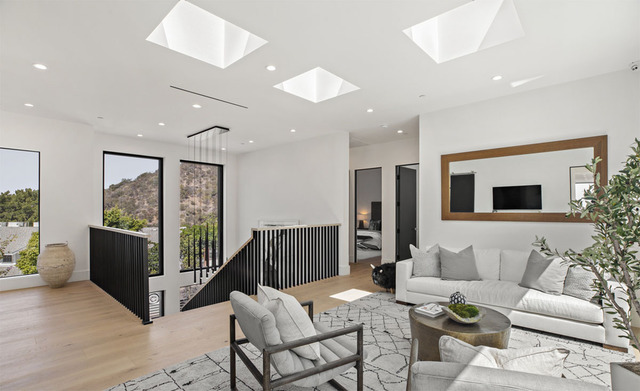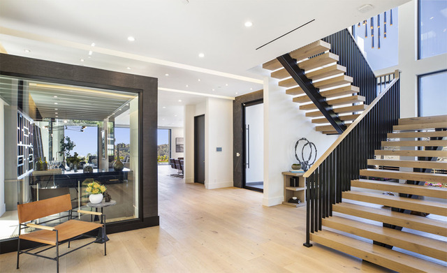 A hatalmas üveg bejáraton belépve, a lapos tetős ház számos egyedi felszereltséggel büszkélkedhet: Franciaországból behozott fehér tölgy keményfa padló, Fleetwood tolóajtók, lenyűgöző kilátás a kanyonra, valamint a Control4 otthoni automatizálás és szupermodern biztonsági rendszer. A kúriát a hatalmas nyitott terek és üvegfelületek jellemzik, ahonnan a kilátás káprázatos.