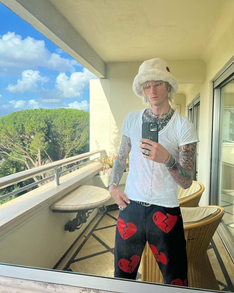 Machine Gun Kelly frizurája megváltozott a Super Bowl parti fellépése közben. Instagram Storiesban árulta el, hogy pénteken áramütés érte.