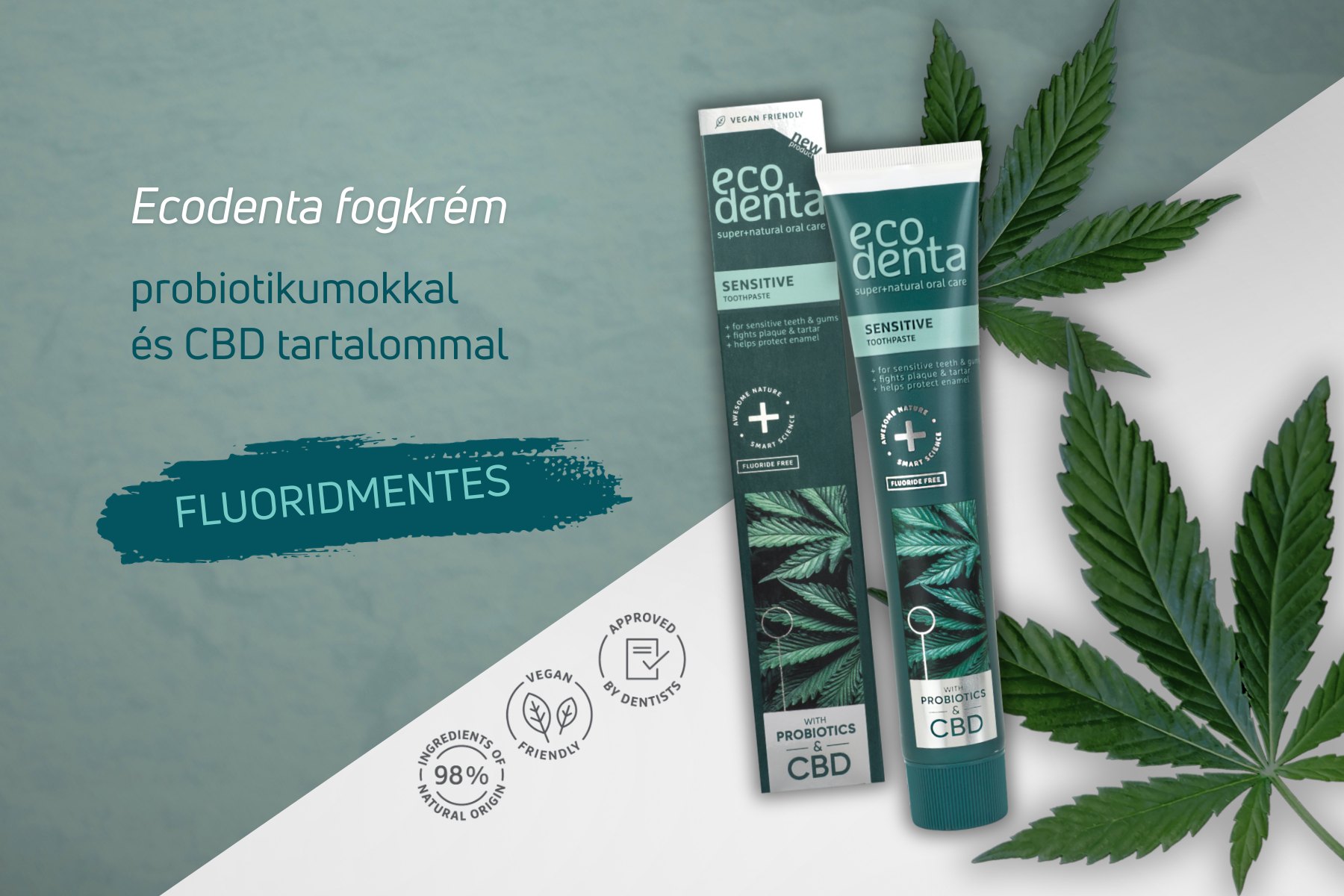 Az egészséges szájhigiénia és fájdalommentes, természetes mosoly sosem volt még ilyen könnyen elérhető. Szerezd be te is az Ecodenta CBD fogkrémed, ami segít csökkenteni a fogak érzékenységét, enyhíti az íny irritációját!