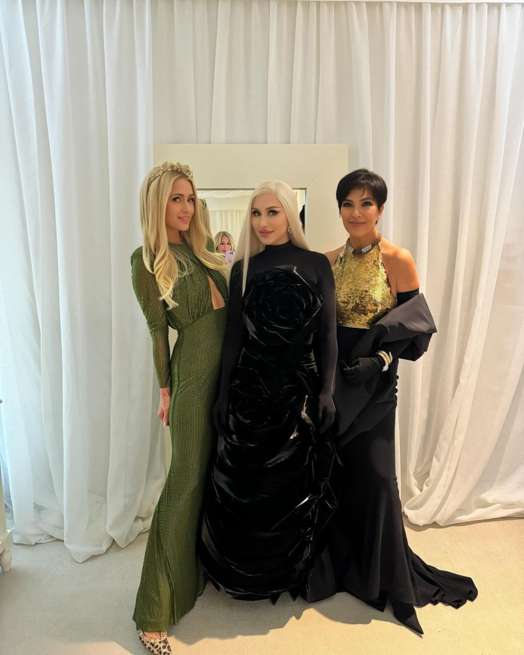 A Kardashian-Jenner testvérek az édesanyjukkal egyetemben estélyiben érkeztek a partira: egy Ariana Grande számra tátogva mutatták meg extravagáns outfitjeiket.