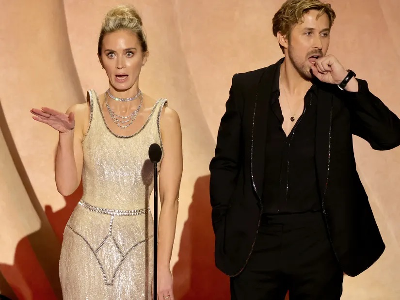 Emily Blunt és Ryan Gosling viccesen összevitatkoztak a színpadon a 2024-es Oscar-gálán.