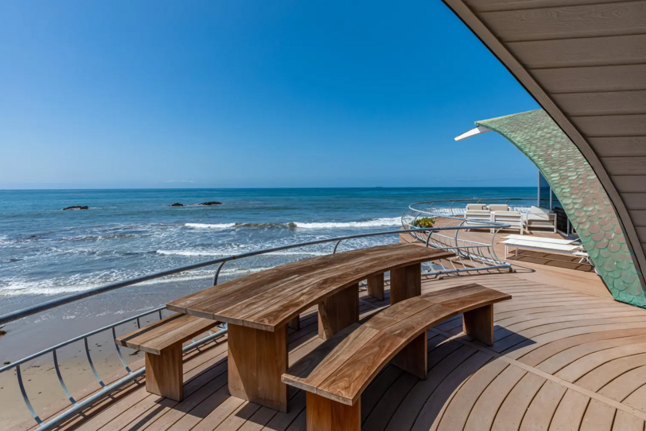 A neves építész a Sydney-i Operaház mintájára tervezte meg az épületet, melynek első tulajdonosa Rod Stewart volt – ő az 1970-es évek elején vette meg a villát, majd 1989-ben a Warner Bros. Records egyik vezetőjének, Mo Ostinnak adta el. A férfi 2022-ben bekövetkezett halála után került a ház a Kloss-Kushner házaspár tulajdonába.
