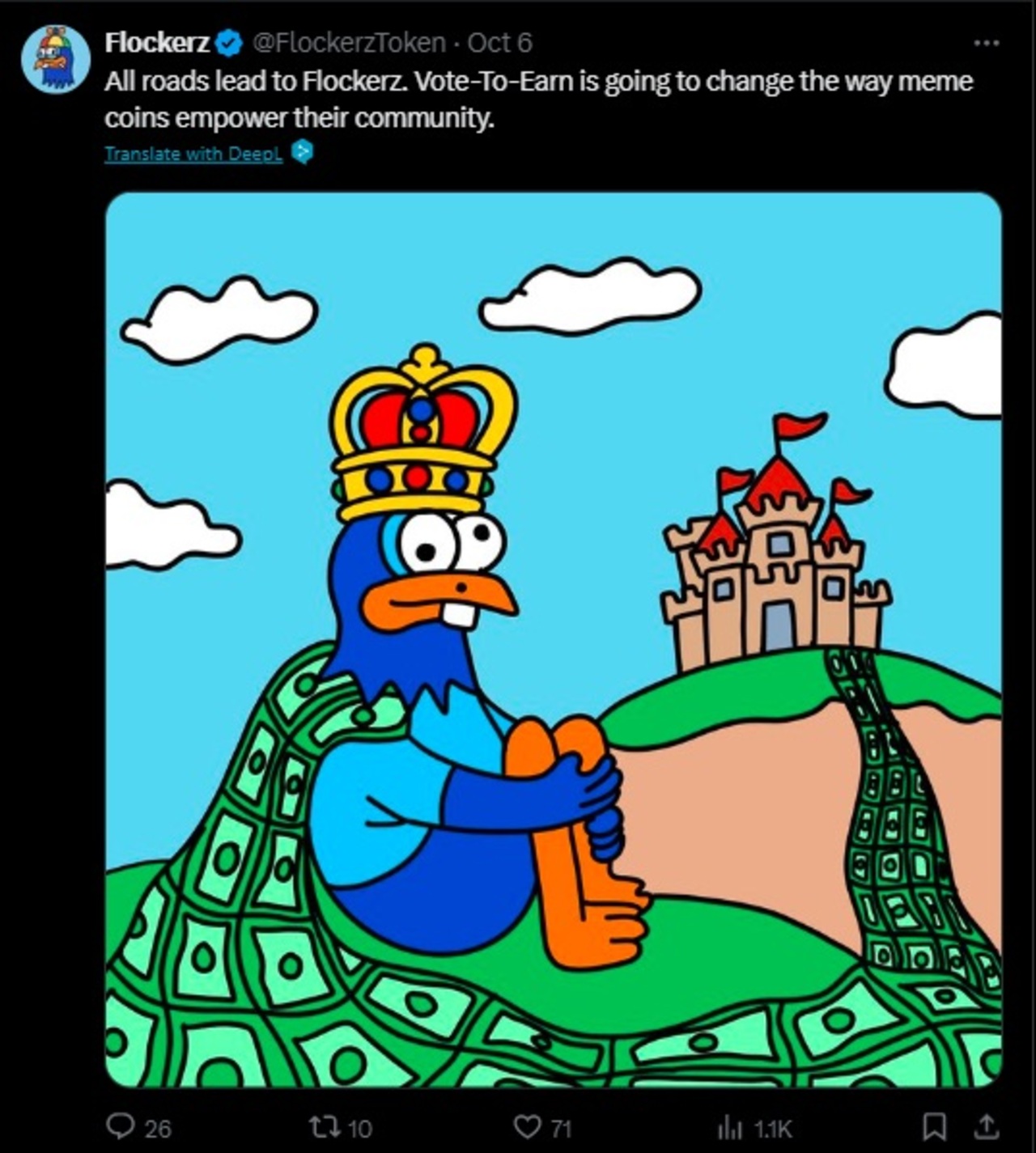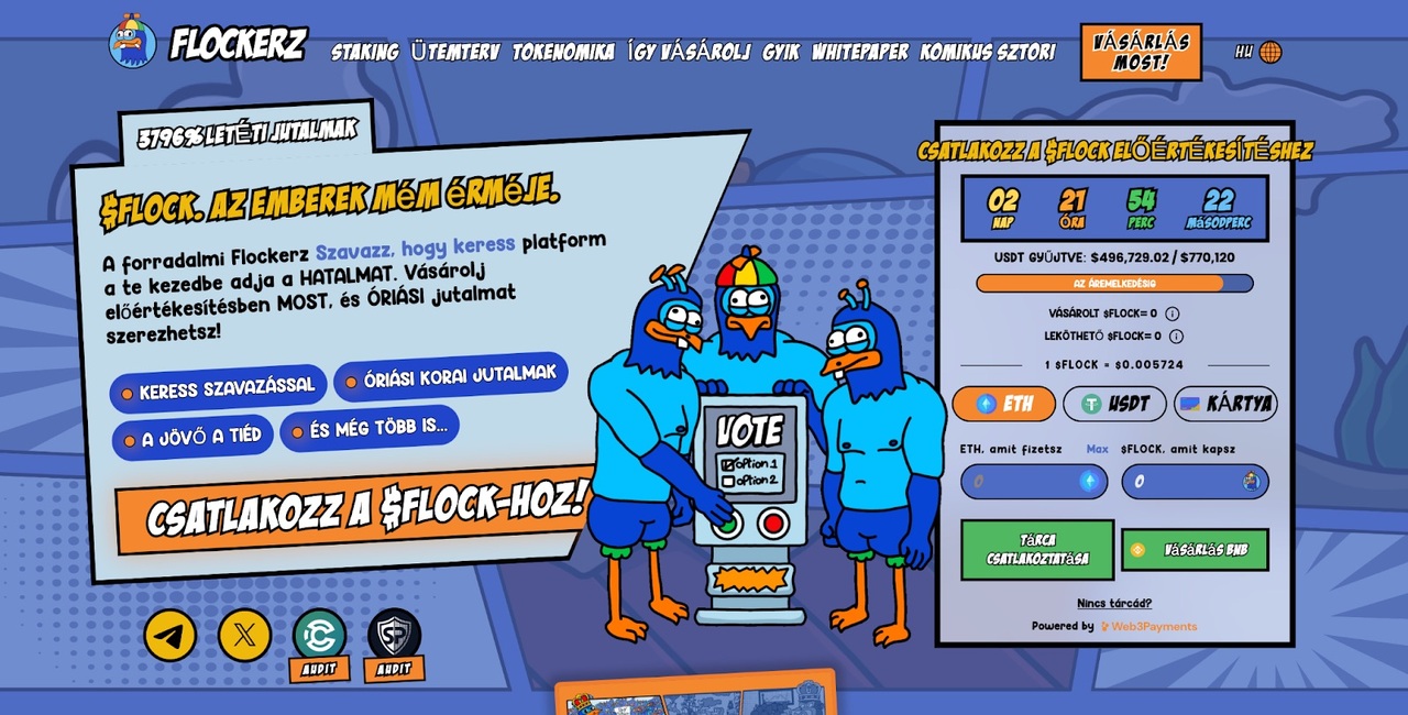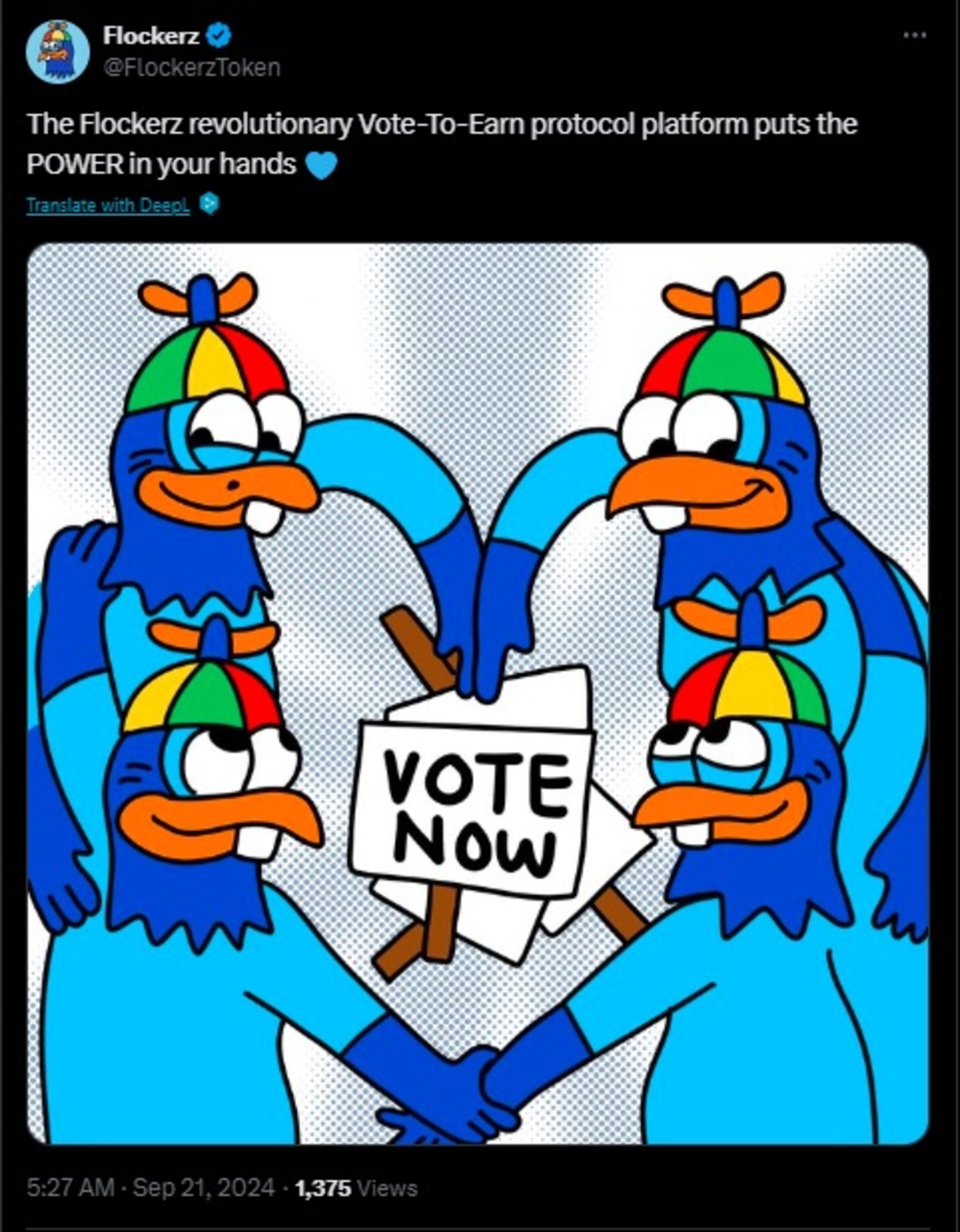 A Flockerz vote-to-earn koncepciója különlegesnek számít a kripto iparágban, hiszen megadja a mém érme tulajdonosoknak azt a hatalmat, mely birtkában fontos döntésekről szavazhatnak, és cserébe megkaphatják a projekt natív tokenjét, a $FLOCK-ot.