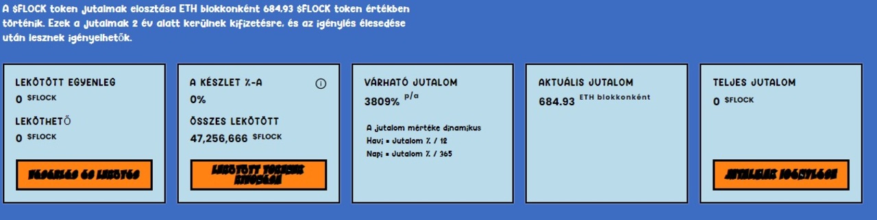 A felhasználók potenciálisan megsokszorozhatják a befektetésüket, ám igyekezniük kell, mert a jutalmak az egyre több befektető csatlakozásával folyamatosan apadnak, és már most 47,25 millió $FLOCK került lekötésre.