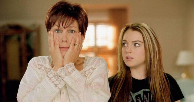 A képen a főszereplők, Lindsay Lohan és Jamie Lee Curtis az ikonikus sikítozó pózban láthatók, amelyet az eredeti filmben is felvettek, mint Anna és Tess Coleman, akik rejtélyes módon egyik napról a másikra testet cserélnek.