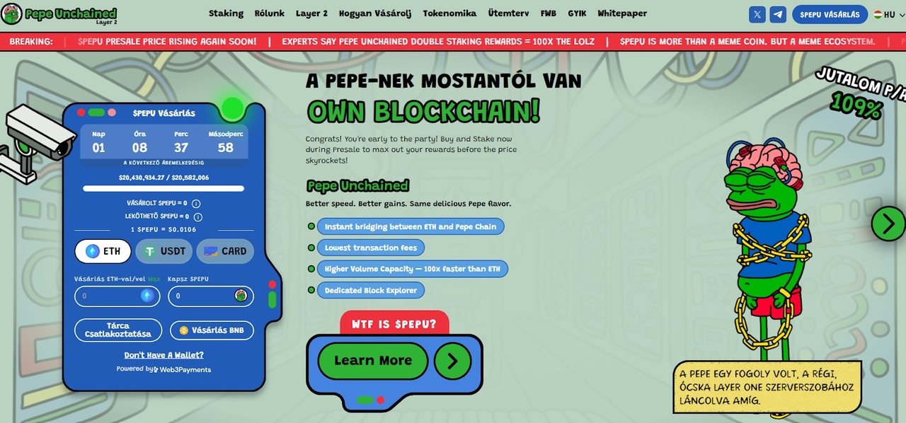 A nagy érdeklődés kereszttüzében a Pepe Chain áll, azaz a Pepe Unchained Layer-2 hálózata az Ethereumhoz.