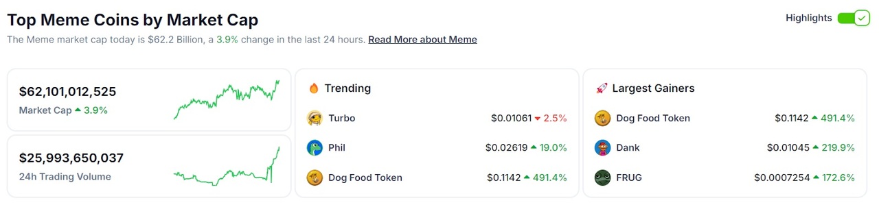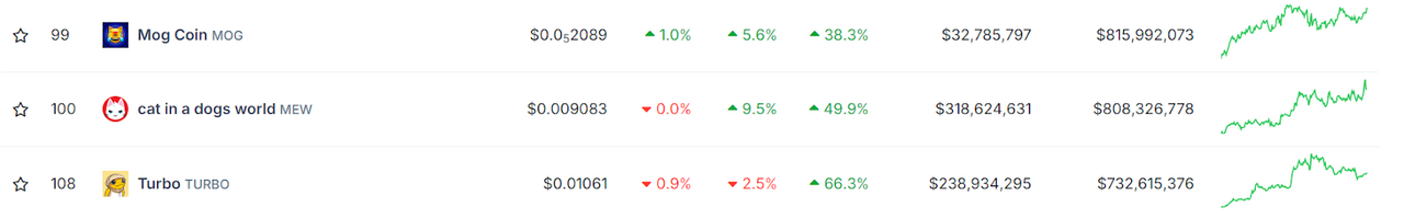 Persze nem csak a TURBO, a MEW és a MOG van ilyen kirobbanó formában, valójában minden jel arra mutat, hogy a kriptopiac egésze felkészült arra, hogy csatlakozzon a pozitív hangulathoz.