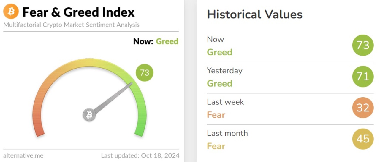 Ettől függetlenül úgy tűnik, hogy újra a bikák irányítanak, a Crypto Fear & Greed Index pedig cikkünk írásakor 73 ponttal a Greed tartományban üdül.