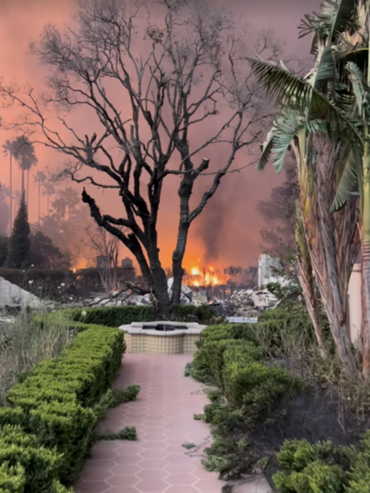 – írta a közösségi médiában Kalifornia egykori first ladyje, Arnold Schwarzenegger exfelesége és felvételeken számolt be a pusztulásról. Nagyra értékelte bejegyzésében a tűzet megfékezni próbáló oltóbrigádot, és elárulta azt is, hogy meglátása szerint a lángok hatalmasak és kontrollálhatatlan méreteket öltöttek.