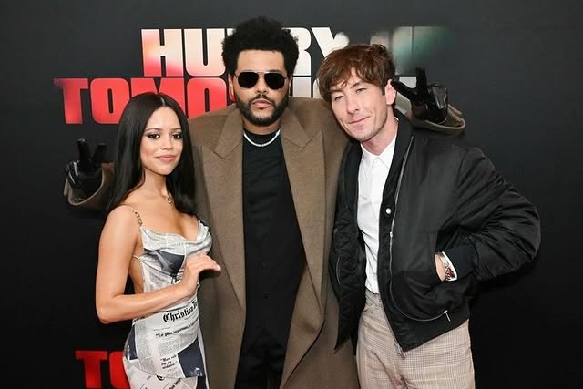 Az újságpapírt ábrázoló vintage kreációt ezúttal Jenna Ortega viselte új filmje, a "Hurry Up Tomorrow" premierjén: ő arany szandállal és vékony arany nyaklánccal dobta fel.